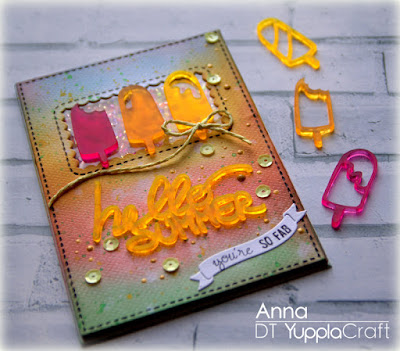 In occasione del cumulativo Yuppla dal vincolo Estate ho preparato una card con i freschi ghiaccioli in acrilico satinato e con la scritta Hello Summer!