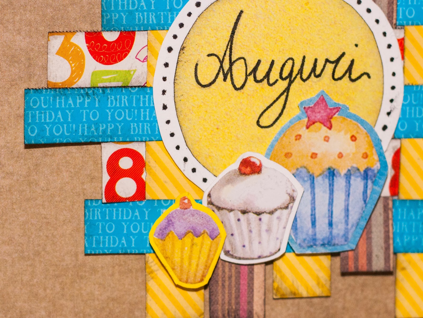 Ho poi incollato un cerchio con gli auguri e tre deliziosi cupcake.