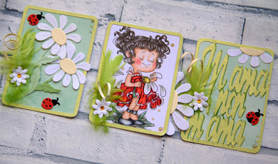 Per il nuovo challenge a Crafty Sentiments ho creato delle Atc... quelle piccole card da collezione nate per essere scambiate o regalate... mi piace un sacco realizzarle! Stavolta ho preso spunto dalla bimba che sfoglia una margherita e mi è venuto in mente il gioco che facevamo da bambini... m'ama o non m'ama? Ecco allora le mie Atc!!!